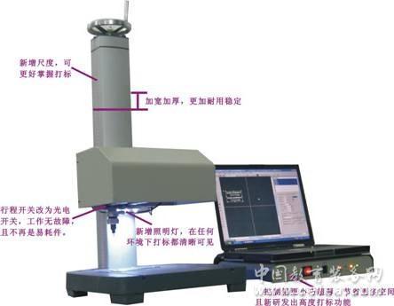 產(chǎn)品詳細介紹基本原理: 通過計算機控制打標針按照電腦編輯好的字符圖形軌跡運動,同時打標針在壓縮空氣的作用下對工件作高頻沖擊,從而在工件上形成字符和圖形。 主要性能: 基于Windows 98 / 2000 / XP / NT 平臺的操作軟件,編輯功能強大,使用更方便。可打印中文、英文字符、阿拉伯?dāng)?shù)字、任意圖形、可自動進行流水號打印、國際標準VIN碼打印、刻度打印。 主要特長: 與國內(nèi)外氣動打標機比較,本廠的主要獨特之處是: 1、采用升降式雙立柱結(jié)構(gòu),適應(yīng)性更廣,定位更精準。(一般打標機為單立柱) 2、采用四根進口方型直線導(dǎo)軌,打印精美度大大提高,從而實現(xiàn)了高速打印。(同類氣動機二根導(dǎo)軌) 3、打標頭(針套)采用特殊的耐磨材料經(jīng)特殊工藝制作而成,耐磨性大大提高,使用壽命提高了幾十倍。(普通打標頭針套均采用銅材制作,耐磨性差,磨損后影響打標精美度) 4、平面標牌夾具設(shè)計緊湊且與電腦連接,實現(xiàn)智能化半自動打印,符合人機工程學(xué)原理,使用特別方便。(同類打標機即使有夾具也沒有同電腦連接,不能實現(xiàn)半自動打印) 5、打標頭的排氣裝置是我廠的創(chuàng)意設(shè)計,既降低了噪音又極大地提高了操作人員的舒適性。 6、一機多用,同一臺高度尺寸有限的臺式打標機,還可在任意大小或任意高度的物體表面的任意位置上打印。這是我廠的最新創(chuàng)意設(shè)計。 7、同一臺打標機同一個打標頭,既能在鋼鐵上打標又能在不干膠紙上打標(一般氣動打標機能在鋼鐵上打標,但很在難紙上打標)。 應(yīng)用范圍: 1、汽摩行業(yè):對車身、車架、底盤、大梁、發(fā)動機、連桿、汽缸、活塞、缸套、齒輪、水泵、彈簧鋼板等打印出廠編號、生產(chǎn)編號、生產(chǎn)日期、名稱、商標等內(nèi)容; 2、機械行業(yè):對各種機械零部件、機床工具、五金制品、鋼管、套管、接箍、牙輪、泵體閥門、法蘭盤、緊固件打標; 3、儀表、機電設(shè)備的打標; 4、塑料制品、皮革制品打標; 5、在鋁、銅、不銹鋼、PVC等材質(zhì)的標牌(銘牌)上打印數(shù)據(jù)、出廠編號、生產(chǎn)日期等; 6、刻印刻度盤。