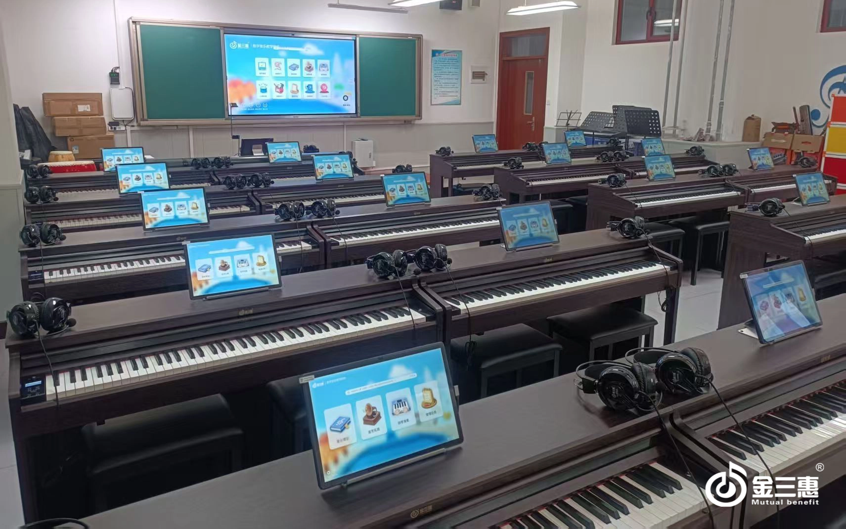 2026年1月,金三惠深入孝義市多所學(xué)校,根據(jù)其共同的集體授課需求與各自的辦學(xué)特點(diǎn),為6所學(xué)校分別提供了1間20+1的智慧音樂(lè)素養(yǎng)教室,配備了金三惠數(shù)字音樂(lè)教學(xué)系統(tǒng)、電鋼琴、數(shù)字音樂(lè)教學(xué)儀等。