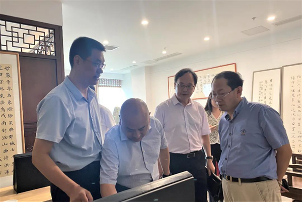 考察現場,譚明悅一行對華文眾合的企業發展態勢及企業文化進行了深度了解,充分肯定了華文眾合“眾心合力,弘揚華文”的企業初心。譚明悅一行提到,華文眾合出品的公益影片《覺醒青年》具有十分積極的教育意義和社會影響。向大鳳表示,華文眾合一直致力于公益事業,在推進書法教育、傳承傳統文化的同時始終不忘積極承擔社會責任。