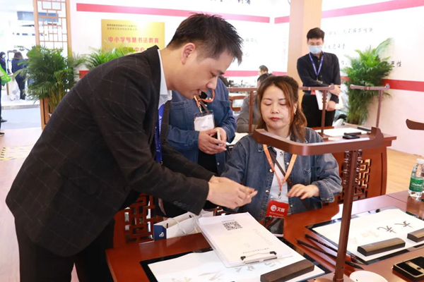 此次展會,華文眾合帶來兩大新科技——Ai評價功能、筆尖跟蹤技術。傳統書法教學一直面臨教師水平參差不一、教學效果高低不一、學習效果無法檢驗等問題,華文眾合第8代智慧書法教室運用人工智能技術,突破師資短缺、課程體系缺位等限制,填補傳統書法教育短板。Ai評價功能從筆畫、結構方面對學生的書寫進行專業評測指導,給予糾錯和建議,讓“Ai老師”隨時隨地輔助學生書法學習。對于具備示范能力的老師,系統配置了基于人工智能技術的筆尖跟蹤功能,能夠實時追蹤書法老師的筆尖,讓學生看到更清晰、更準確的運筆細節。