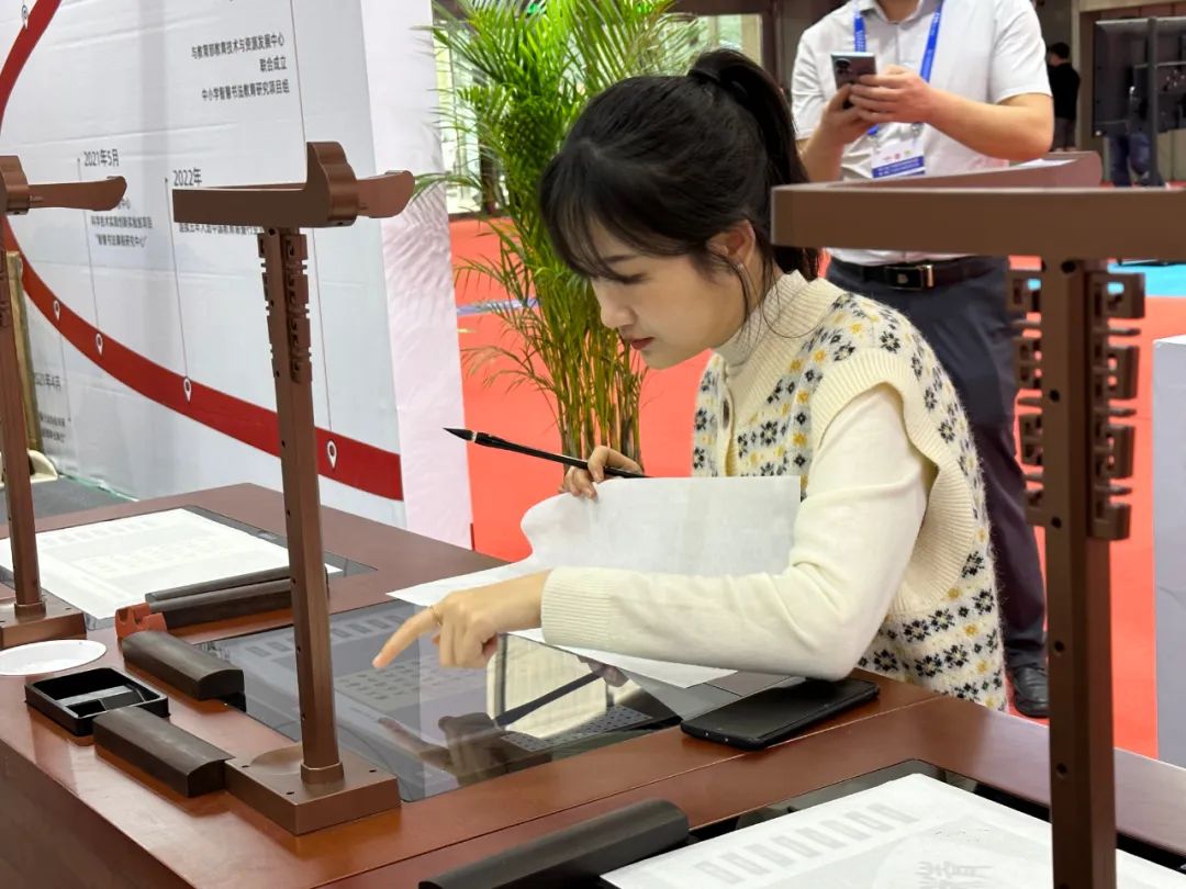華文眾合智慧粉筆教室惹人注目,觀眾進(jìn)行體驗