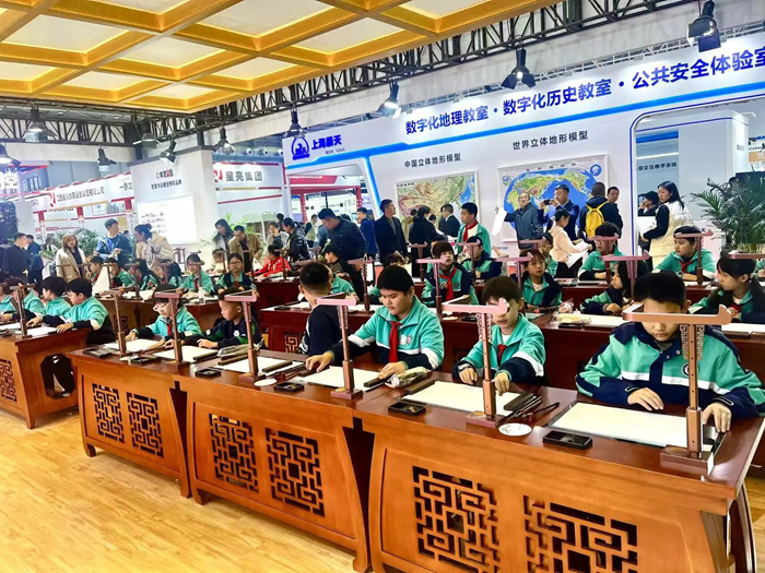 除了華文小奕機(jī)器人,華文眾合展位的核心產(chǎn)品第九代智慧書法教室和智慧粉筆教室同樣備受矚目,其傳統(tǒng)與科技的完美結(jié)合,引得教育工作者、高校領(lǐng)導(dǎo)及對書法感興趣的社會各界人士紛紛駐足參觀體驗。
