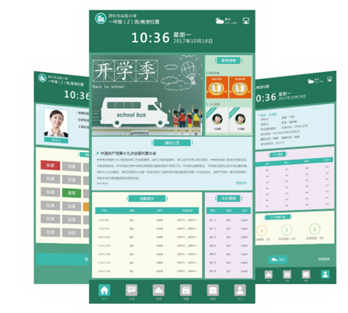 長虹教育·智慧班牌配備了智慧設備管理平臺,超高亮度,在陽光的照射下依然能夠清晰查閱各類資料,具有IP65級別的防水防塵能力,不用再擔心下雨臺風等淋濕淋壞。班牌支持多點觸摸,無需矯正,耐磨損、壽命長,維護成本低。采用RFID射頻技術,支持遠距離識別(1.5m),可實現20張/秒的同時讀取速度,摒棄傳統人工點名、手工簽到、耗時耗力的考勤方式,完成智能化考勤,并向教師、家長自動推送學生考勤數據。班牌同時顯示該教室安排的課程和任課教師信息,學生也可自主查閱個人課表和成績,班級信息、班主任信息、班級宣傳文化、班級活動照片、優秀標兵、學校通知公告,并可根據班級情況,個性化展示。