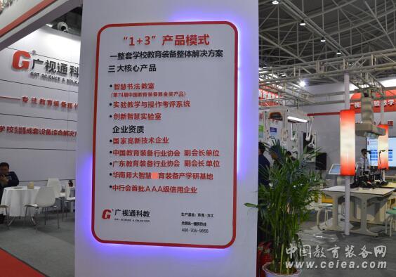 此次展會廣視通傾力打造了“1+3”的產品模式,帶來了智慧書法教室、實驗教學與操作考評系統、創新智慧實驗室及學校教育裝備整體解決方案。