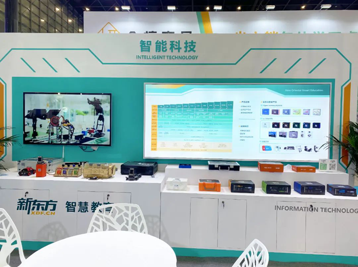 在科技教育板塊,新東方智慧教育展出的智能科技、航天科技兩大細分領域系列教育產品及體系化的課程設置和人才培養模式,是此次展會的一大亮點。