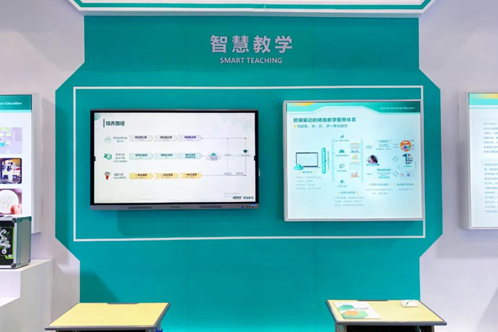 智慧教學分區,新東方智慧教育此次重點展出了數據驅動的教學質量提升計劃。該計劃面向新高考教學需求,以學生發展為中心,構建包含一個智慧教學平臺,精品數字題庫、智能考閱、智能新高考、雙師課堂應用等四個抓手,以及高考培優課程服務、精準教學賦能、校本資源建設等三項提升服務在內的“一四三一建設體系”,旨在幫助區域/學校實現整體教學質量提升目標,達成“教、學、研、評、管”全場景、全流程的智慧化覆蓋,為教師精準化教學、學生個性化學習提供智慧賦能,讓大規模因材施教成為可能。
