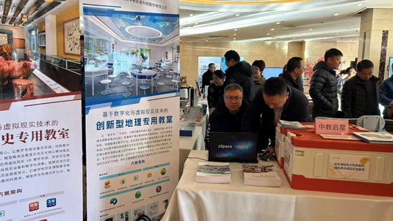 在展覽交流環(huán)節(jié),中教啟星集中展示了包括地理VR教學(xué)系統(tǒng)、歷史VR教學(xué)系統(tǒng)、地理實(shí)驗(yàn)套裝、AI地理實(shí)驗(yàn)教學(xué)系統(tǒng)在內(nèi)的一系列核心產(chǎn)品,吸引了眾多參會教師代表駐足體驗(yàn),深入咨詢。中教啟星以科技賦能教學(xué),為地理、歷史等學(xué)科教學(xué)提供了全新的授課形式與課堂體驗(yàn),有效助力教育教學(xué)方式創(chuàng)新與教育質(zhì)量提升。