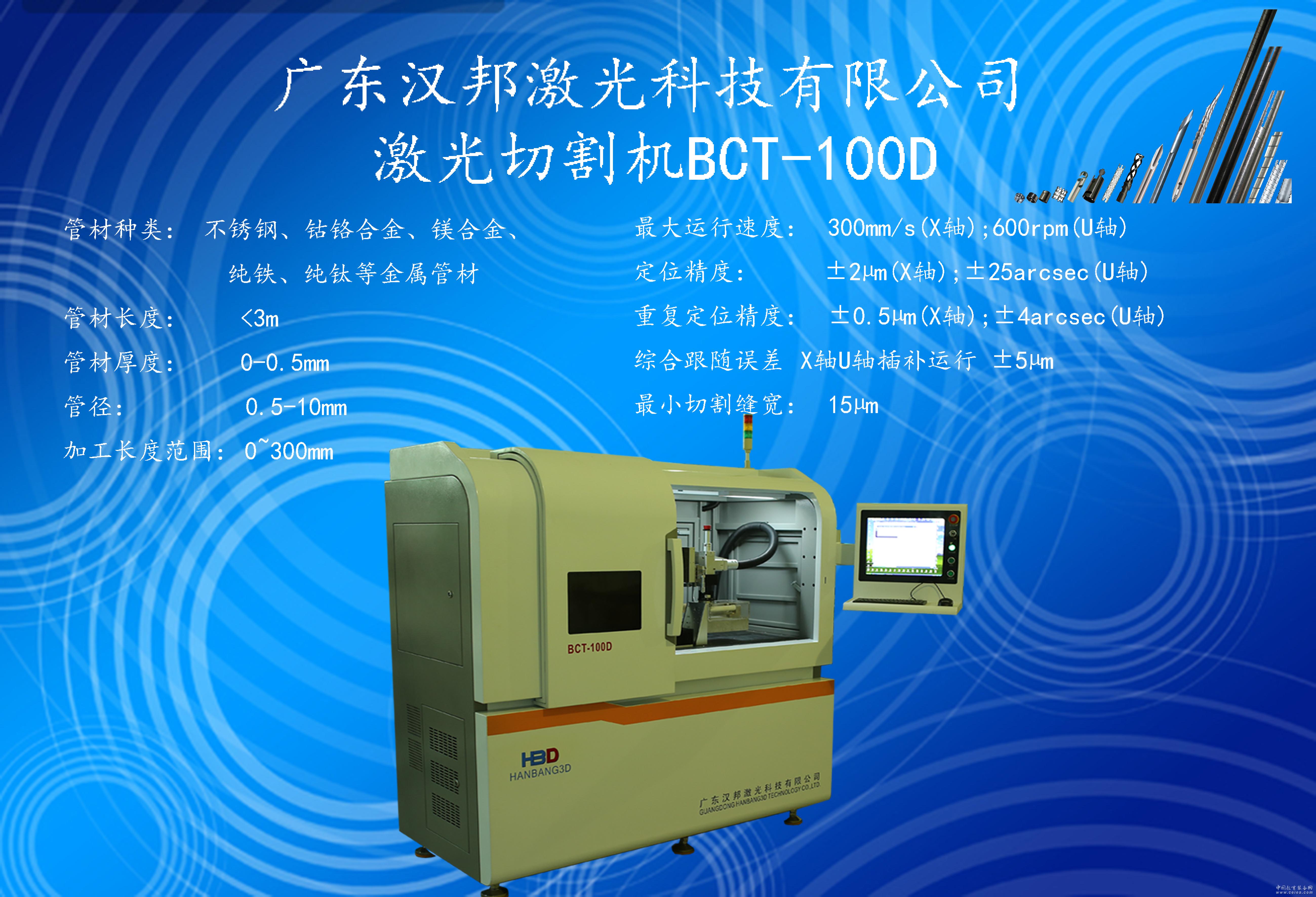 產(chǎn)品詳細(xì)介紹 廣東漢邦激光科技有限公司 我司的激光切割設(shè)備,全部采用進(jìn)口光纖激光器,配套進(jìn)口工作臺(tái)系統(tǒng),針對(duì)各類血管支架等各種醫(yī)療管類植入體,以及鼻鉆、骨鉆等微型管類零件、內(nèi)窺鏡連接體、各種異形針管、工業(yè)精密管零件、各類金屬微管等,可以實(shí)現(xiàn)多種工藝的精密切割,滿足客戶的種種需求。 電話:13242224721 QQ:956018187 許均列