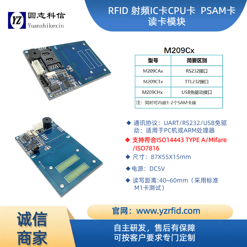 M209DPC 支持非接觸卡 Mifare S50,S70,FM11RF08,FM1208,FM1204 及其兼容卡