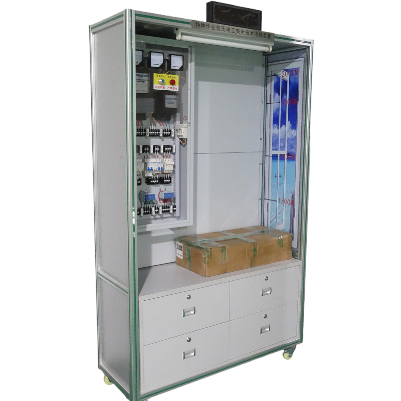 3、設備配置:柜內(nèi)裝有單聯(lián)開關、雙聯(lián)開關、單三相電度表、照明燈、日光燈等各種實訓元器件,且所有器件的接線都在接線端子排上進行接線,從而避免了因長時間在器件本身進行走線而導致其損壞,通過走線槽進行工藝布線。內(nèi)含:電源開關(單相斷路器3只、三相斷路器1只)、電能表2只、照明燈(白熾燈、日光燈各1個)、熔斷器2個(備注額定電流32A以上)、漏電保護器1個、組合開關1個、單雙聯(lián)開關各1個及接線端子若干。